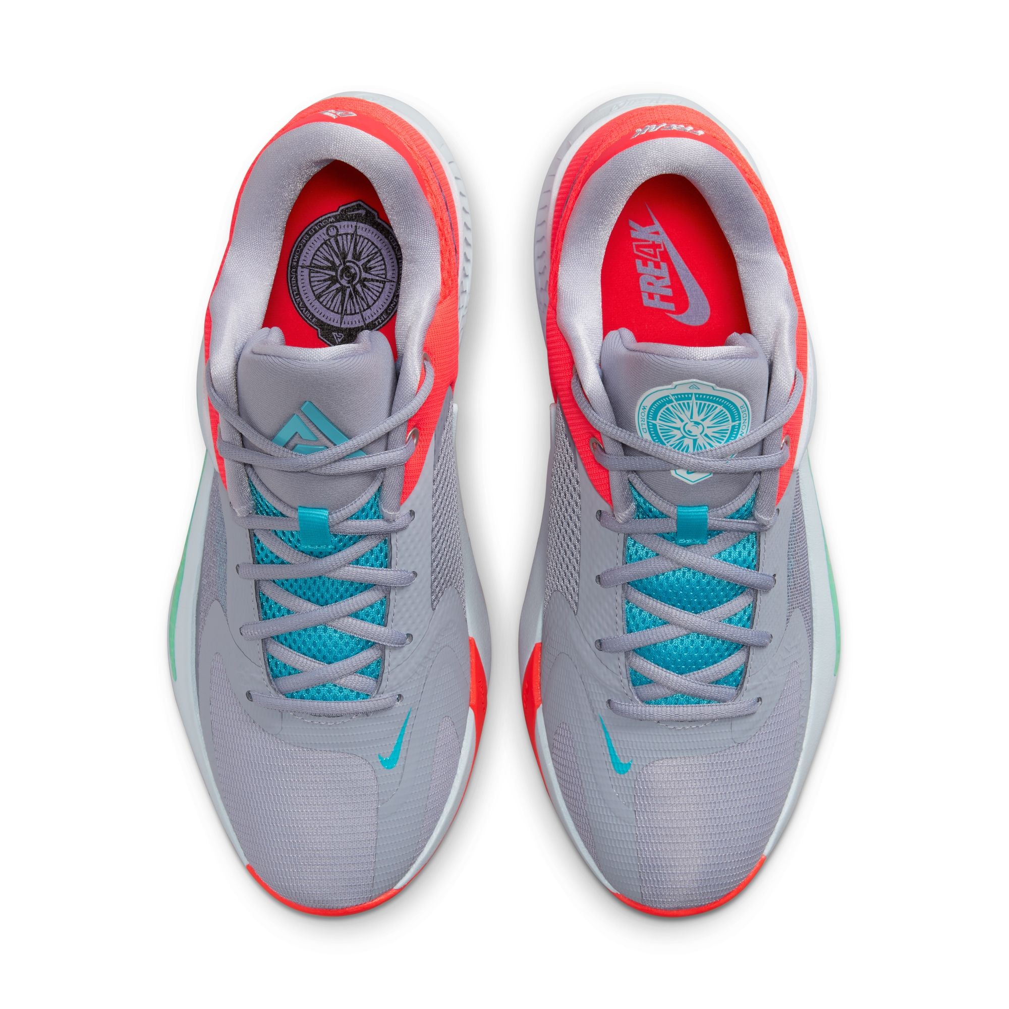 Το ειδικά διαμορφωμένο ανάποδο λογότυπο Swoosh αποτελεί χαρακτηριστικό γνώρισμα των παπουτσιών Freak του Γιάννη.