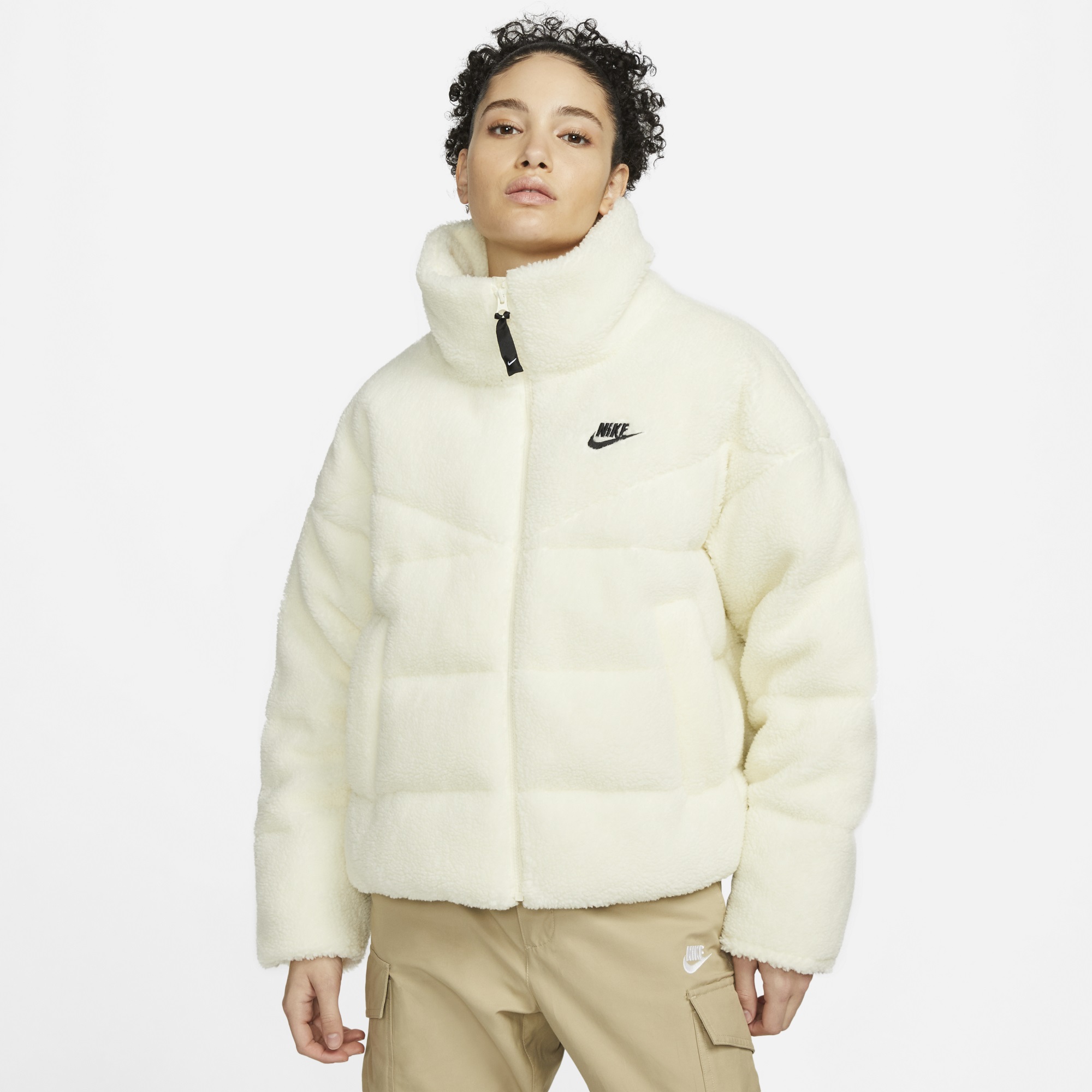 NIKE WOMENS SPORTSWEAR THERMA-FIT CITY SERIES DOWN-FILL PUFFER SHERPA JACKET ''CASHMERE BLACK''