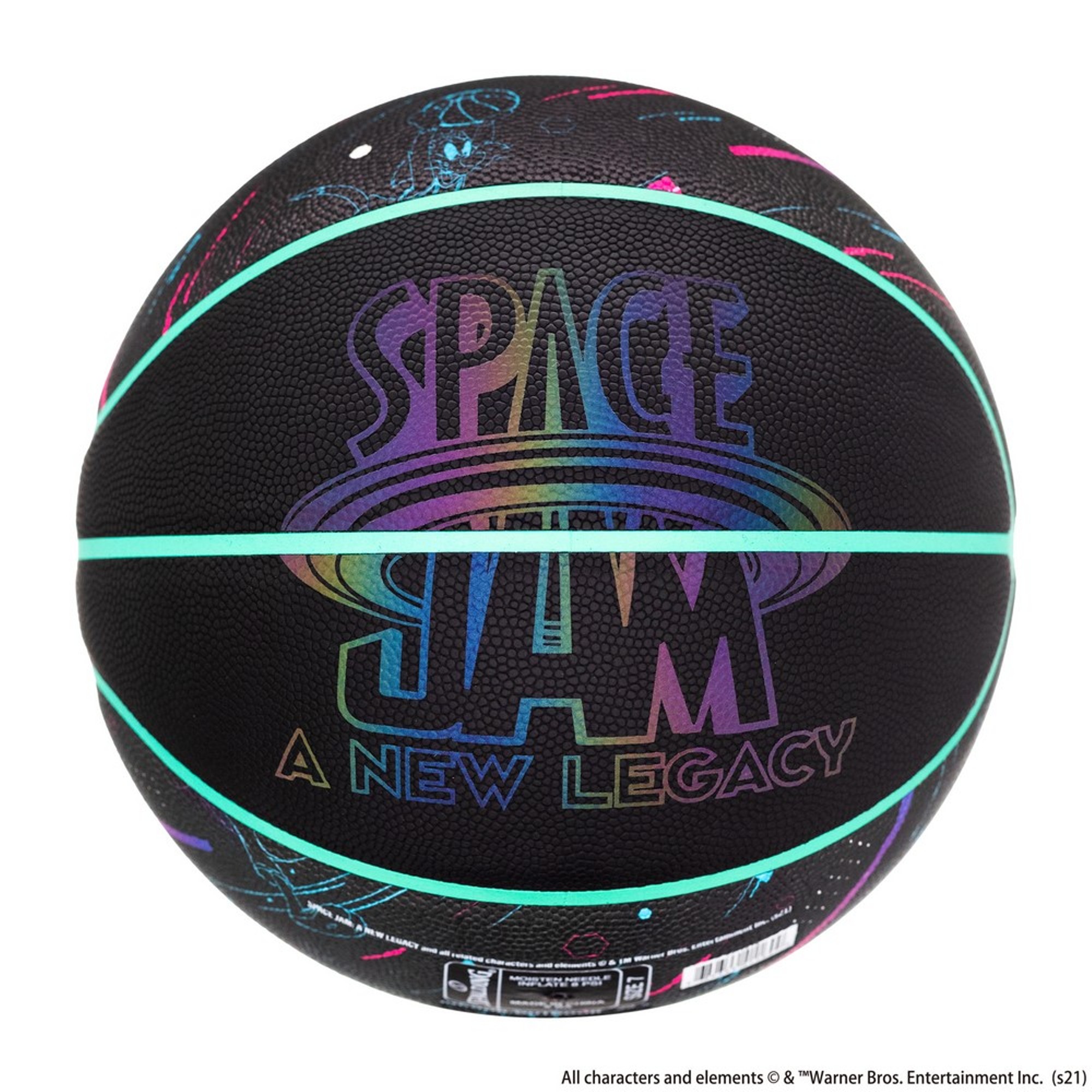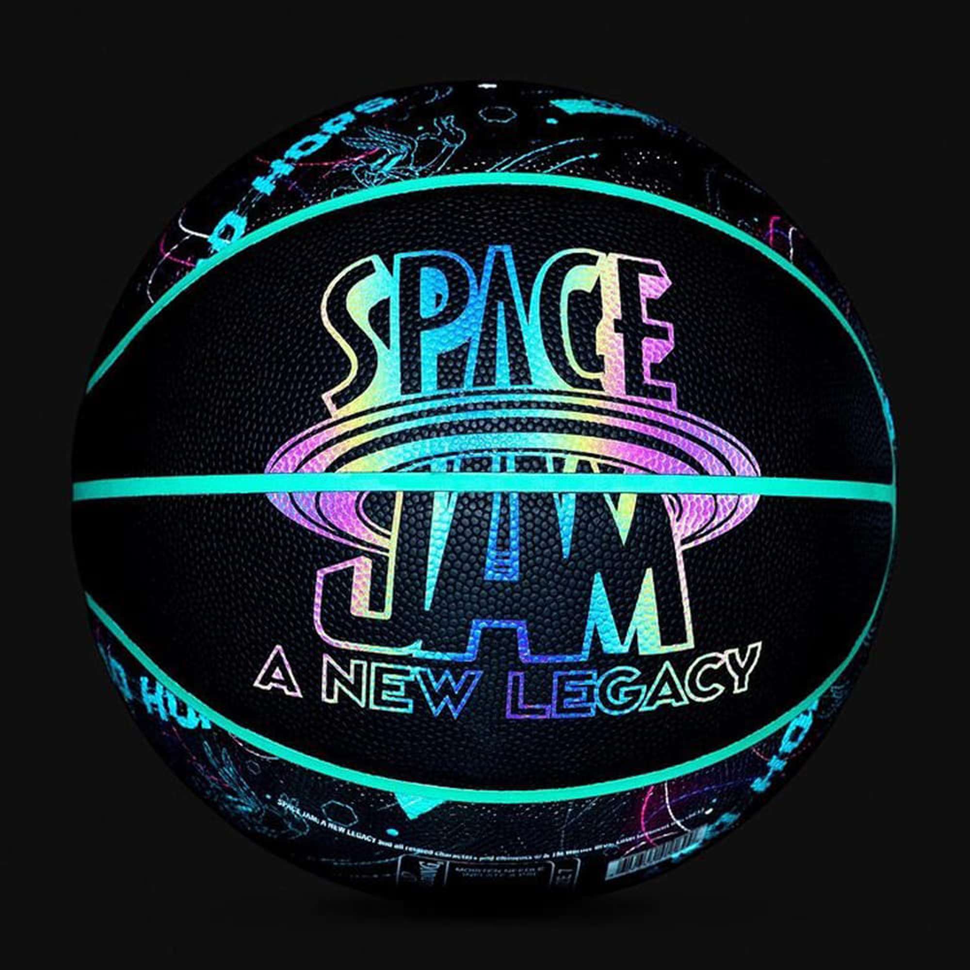 Spare no defender and conquer the court with the Spalding® x Space Jam: A New Legacy Tune Squad Iridescent Composite Basketball. Built for control, this ball has a deep channel design that gives you a solid grip for behind the back passes and high flying slam dunks. It has an indoor/outdoor premium composite cover that is equipped for the hardwood, concrete or asphalt surfaces which provides superior durability wherever you decide to ball. The special accent iridescent glow features display an array of colours in different light that are out of this universe.